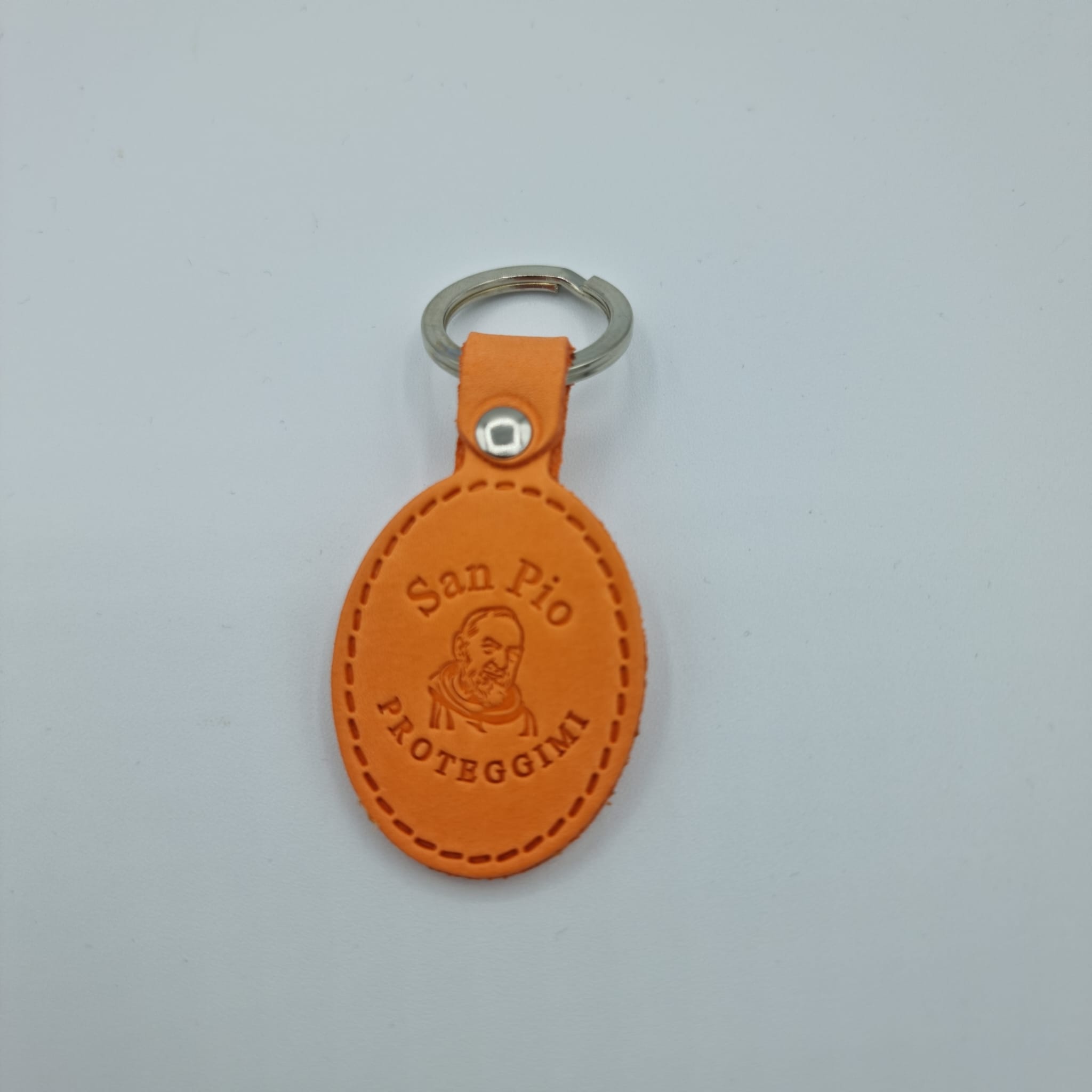 Portachiavi in vera pelle con l’effigie di San Pio da Pietrelcina incisa o applicata. Un accessorio raffinato per portare sempre con sé un segno di fede.